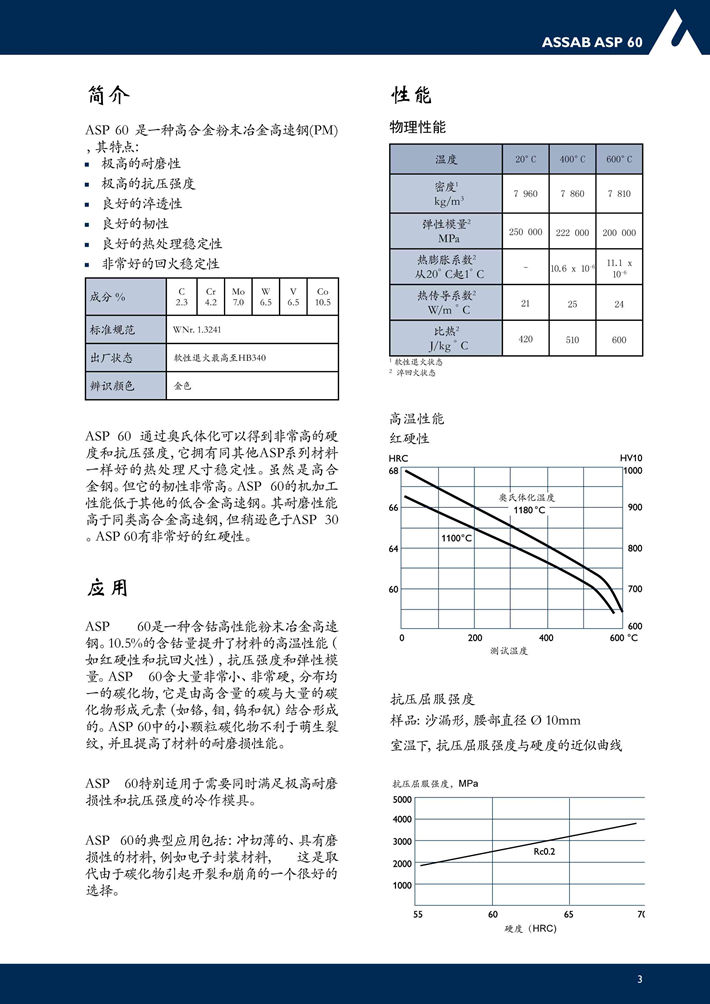 瑞典進口ASP60粉末高速鋼:用于刀具和冷加工的粉末高速鋼,極高的耐磨性和高溫時硬度。