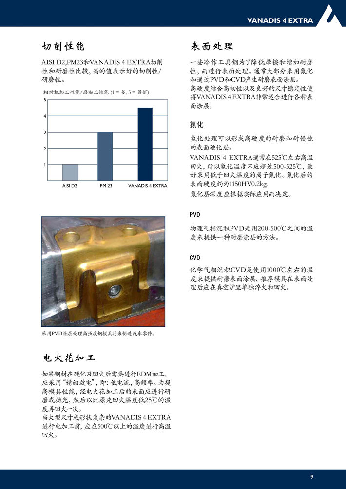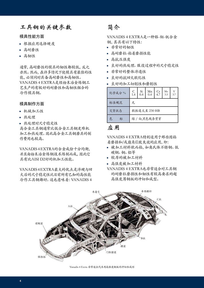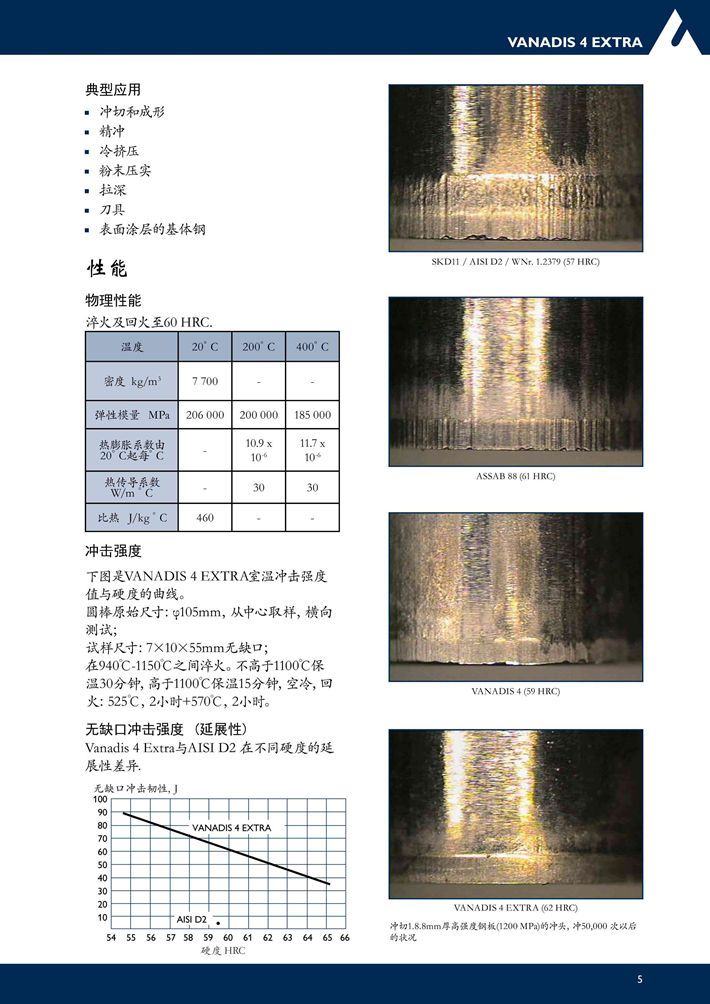瑞典進口V4(VANADIS4 )粉末高速鋼:長壽命粉末冶金模具鋼,用于對粘著磨損和抗崩角性能有高要求的場合。