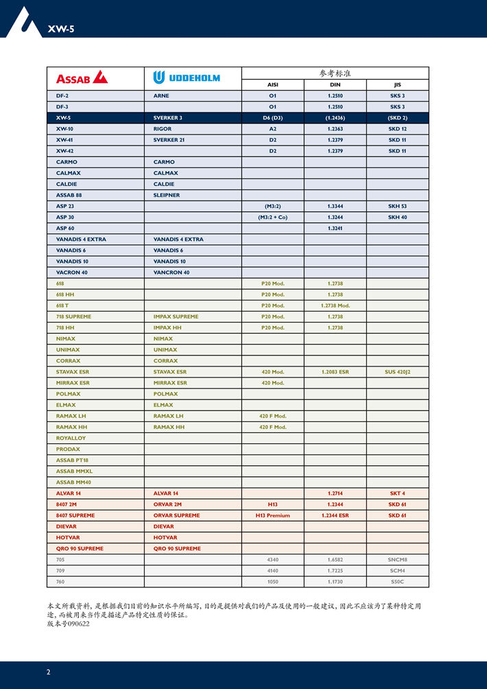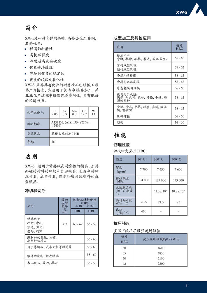 瑞典進(jìn)口XW-5冷作模具鋼:含12%Cr,高碳,具有出色的耐磨粒磨損性能的模具鋼。