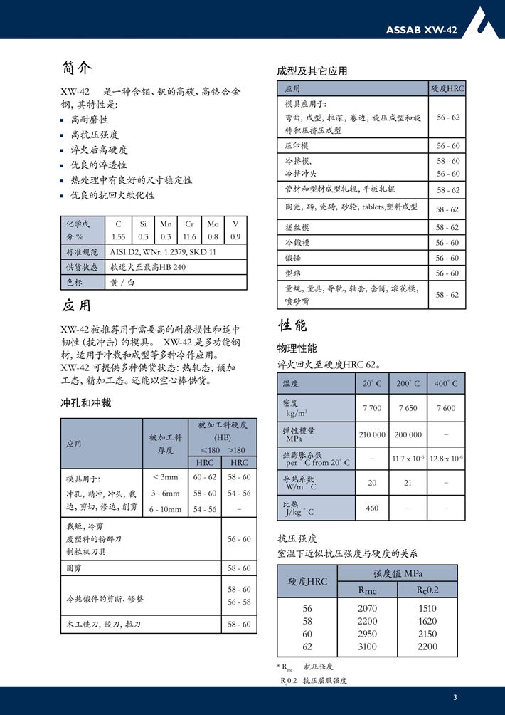 瑞典進(jìn)口XW-42冷作模具鋼:含12%Cr的高耐磨和韌性的模具鋼
