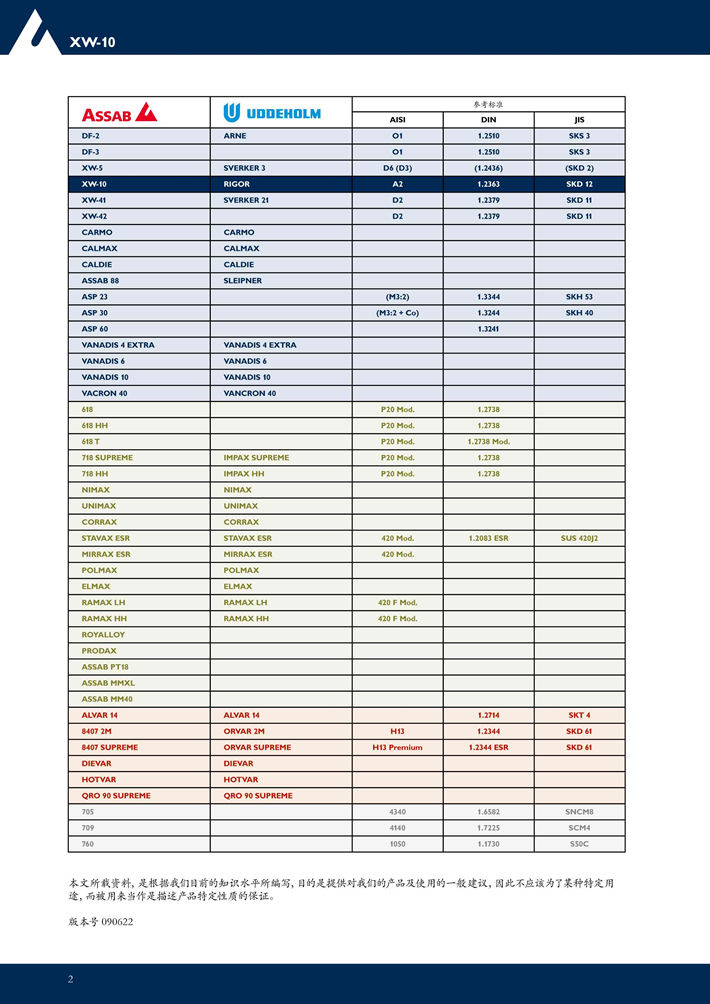 瑞典進(jìn)口XW-10冷作模具鋼:優(yōu)良的淬硬性和耐磨性,出色的尺寸穩(wěn)定性。