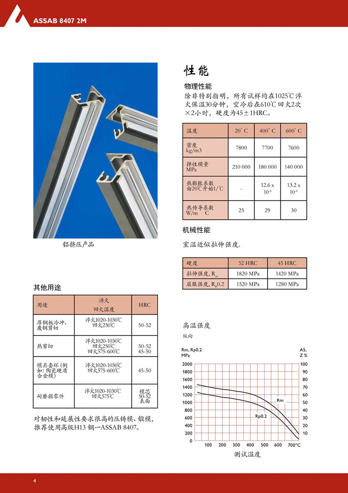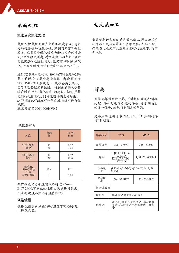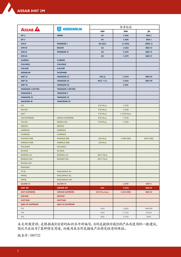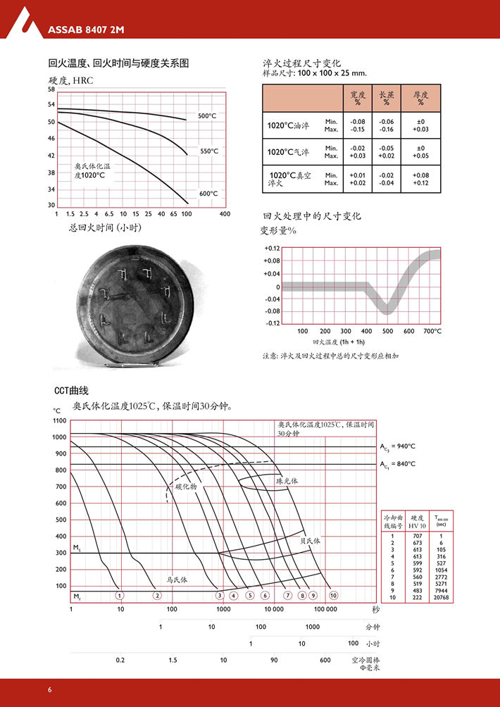 瑞典進口8402熱作模具鋼:具有全面優(yōu)良的延展性,韌性,耐磨性,淬硬性和機加工性能。