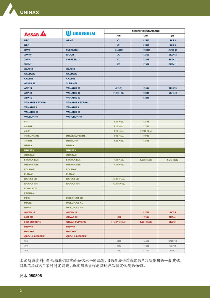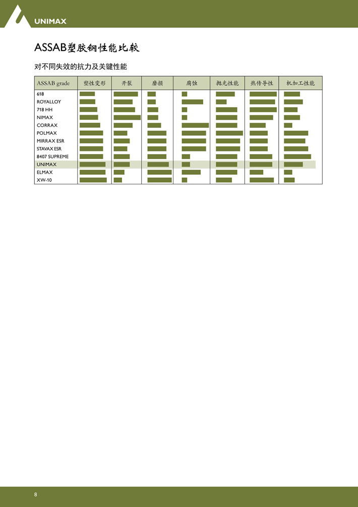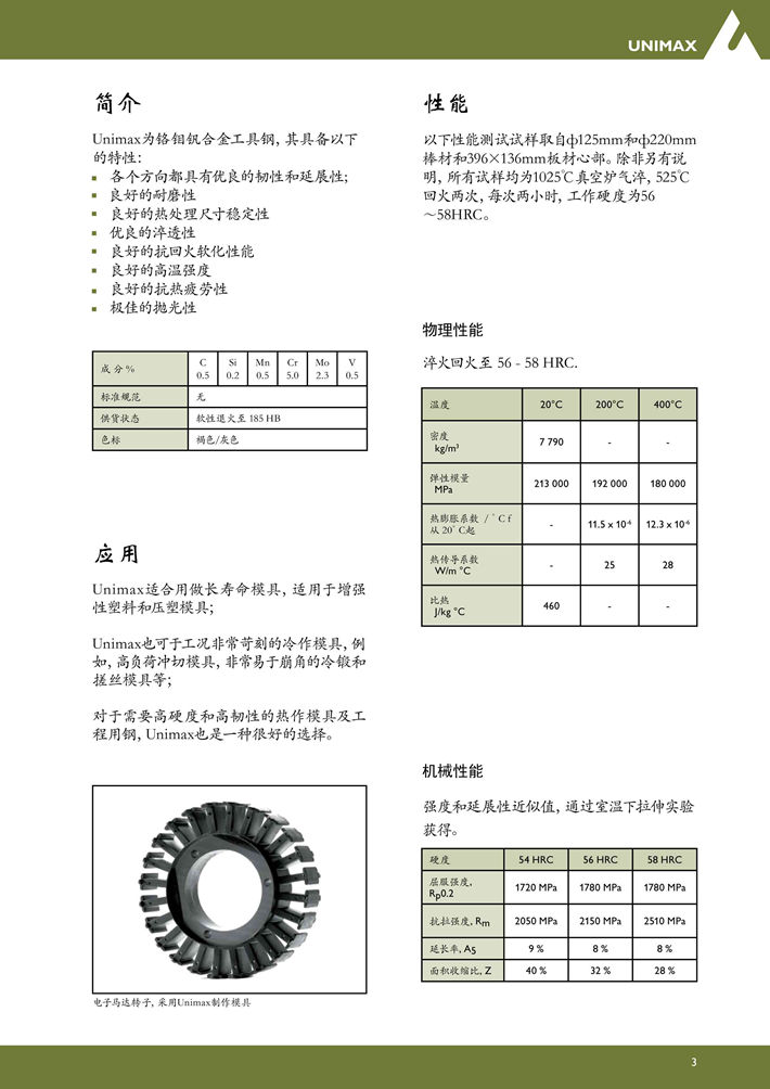 瑞典進口UNIMAX塑膠模具鋼:高硬度,非常優(yōu)良的韌性,ESR(電渣重溶)獲得優(yōu)良的拋光性能。適合做涂層或氮化