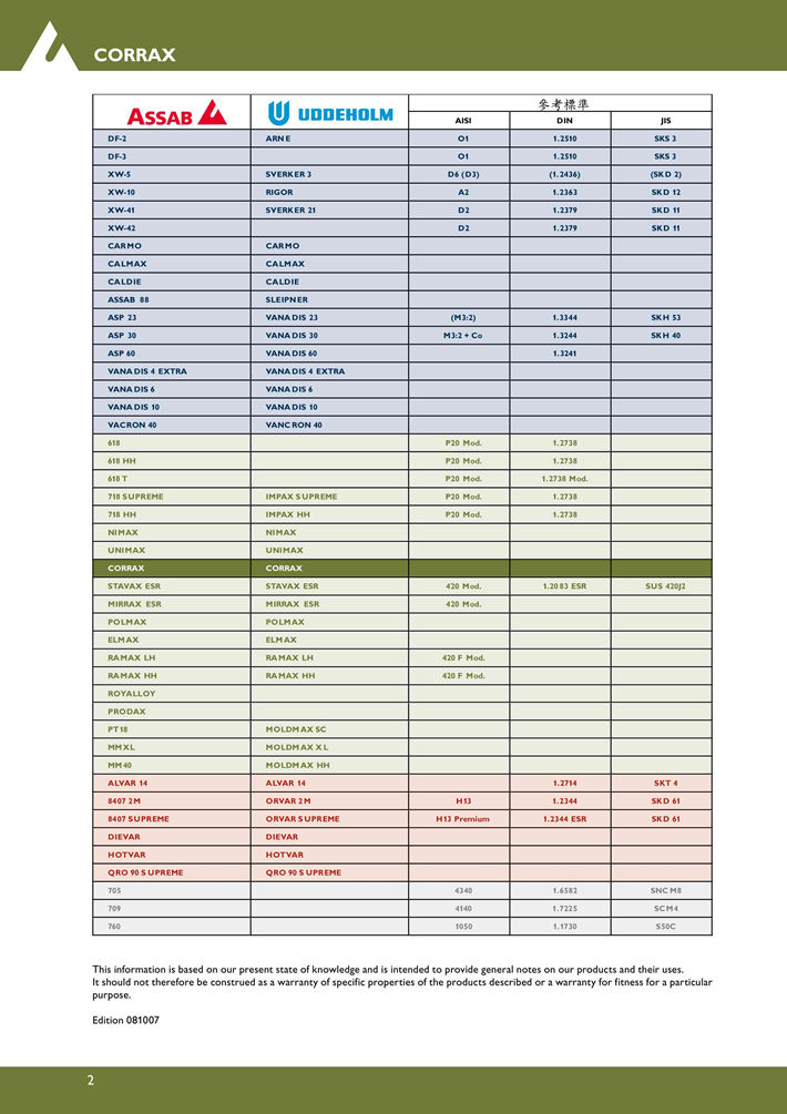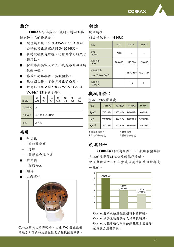 瑞典進(jìn)口CORRAX(S336)塑膠模具鋼:時(shí)效硬化不銹鋼,具有的抗腐蝕性能。